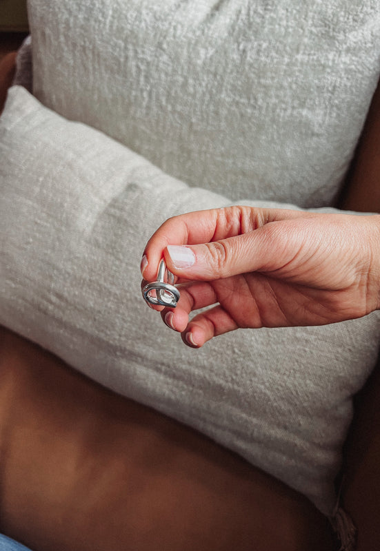 Resting snake ring, cast from an original wax carving. In a single continuous wabi-sabi line, this snake rests her head on her coil in a moment of meditative pause. A reminder that the divine feminine, in her truest form doesn't strike, but uses her high vibration to lure in and attract everything she desires. High gloss hand polished finish. Handmade and cast in sterling silver in the USA.